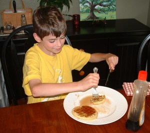 I have never had a problem with serving Logan waffles for breakfast – or for dinner, for that matter! (There was even a short period, soon after I had been newly-bachelorized, where I actually ate Peanut Butter Crunch for dinner – that’s a bit more problematic though, and it only lasted… a week?)