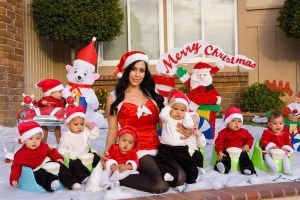 4  –  I put a great deal of effort into making holidays special for my kids. Especially Christmas. We always take a family photo to show how much the kids have grown in the last year. Nadya Suleman started this tradition with her octuplets, too. I’m sure when they’re teenagers they’ll look back at their first Christmas photo with mommy and smile.